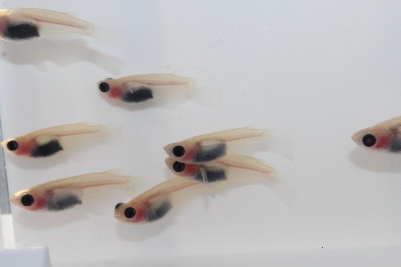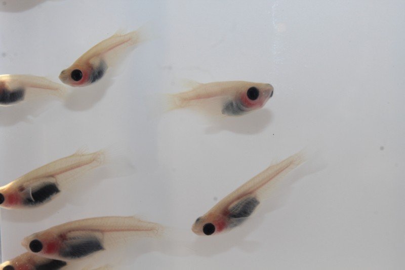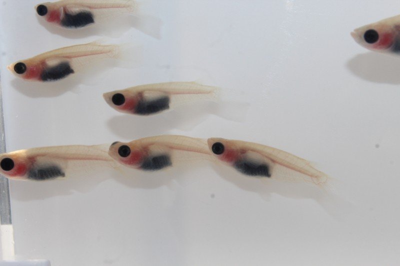 スケルトンの体に可愛い黒目が特徴のメダカです。